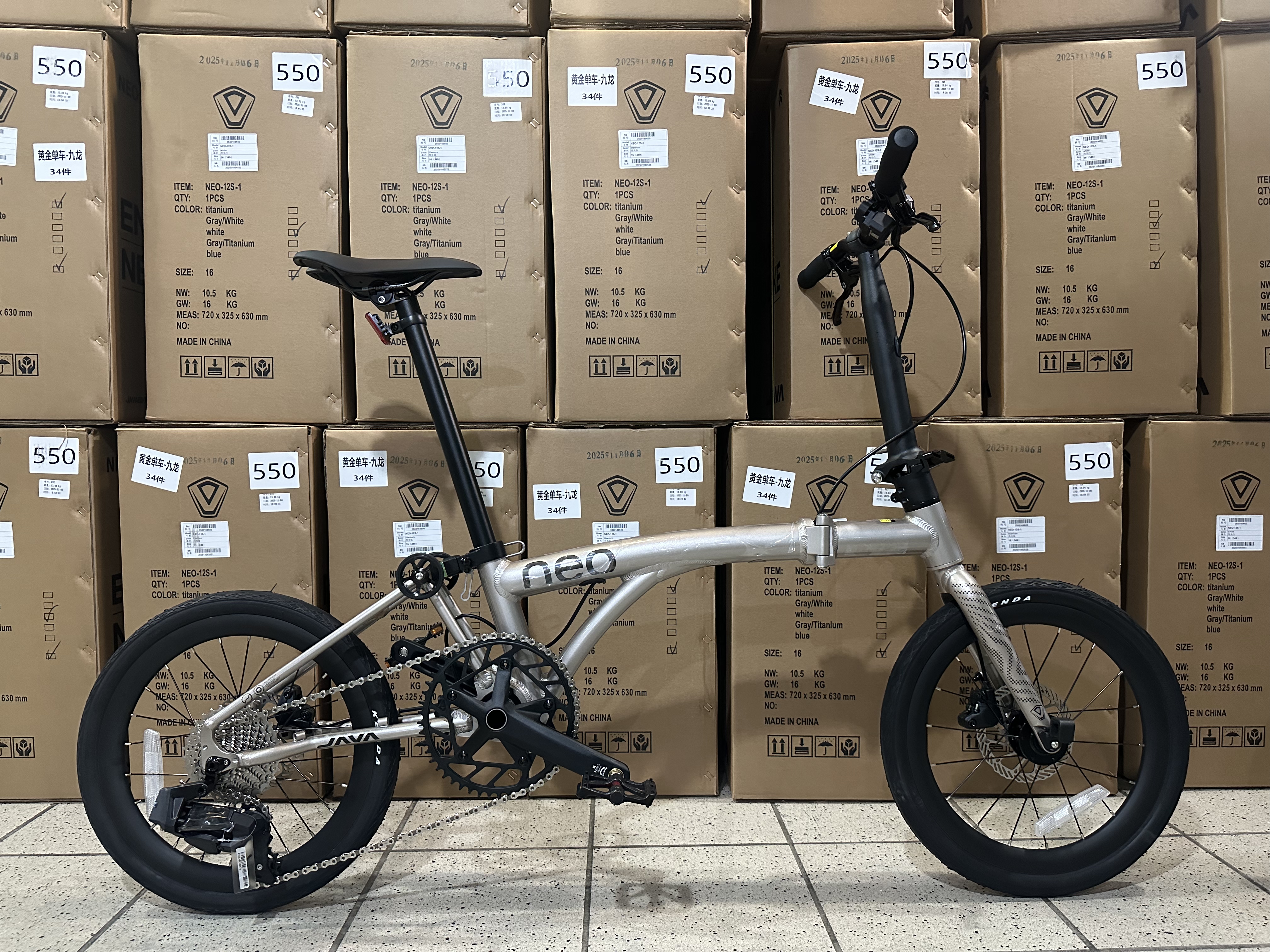 產品介紹: Java Neo Ex 電子變速 12speed 11-32t Please note Lithium Battery is can’t ship overseas .Thanks 車架:Alloy 前叉:Alloy 車把:Alloy EHE : folding handle post 座管:Alloy FA: 50T hollow crank 指撥:國產電變12S 波腳:Wheeltop 輪峰12S 飛輪:11-32T 12S 鏈條:12S 剎車:hydraulic brake 輪組:Alloy349 坐垫:Black 重量:約10kg 車架五年保